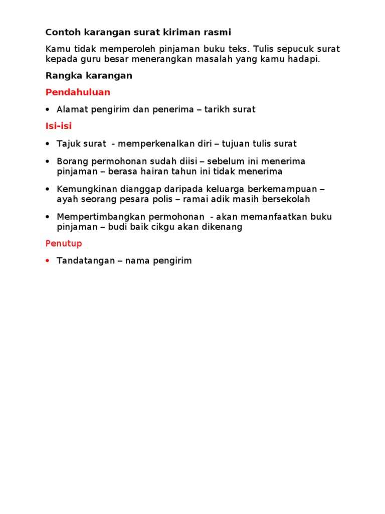 6g, lorong 4e, taman bakawali, 70000 seremban. Penggunaan bahasa karangan ini perlu mematuhi hukum tatabahasa. Selain surat rasmi, terdapat 1 lagi jenis surat yang ditulis untuk kegunaan tidak rasmi iaitu surat kiriman tidak rasmi. Penggunaan bahasa karangan ini perlu mematuhi hukum tatabahasa. Contoh karangan surat tidak rasmi.